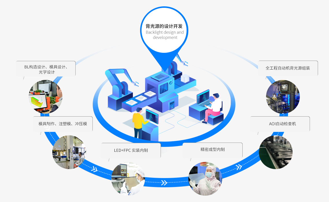 公司深耕背光顯示模組領(lǐng)域;通過持續(xù)不斷的技術(shù)創(chuàng)新;不斷加深的一體化生產(chǎn)能力;持續(xù)打造技術(shù)領(lǐng)先、質(zhì)量過硬、服務(wù)周全的優(yōu)質(zhì)產(chǎn)品。通過多年模具設(shè)計及制作經(jīng)驗(yàn),利用日本高精度模具加工等設(shè)備;緊貼客戶需求,重視產(chǎn)品組合開發(fā),向客戶提供一站式專業(yè)產(chǎn)品及技術(shù)解決方案。